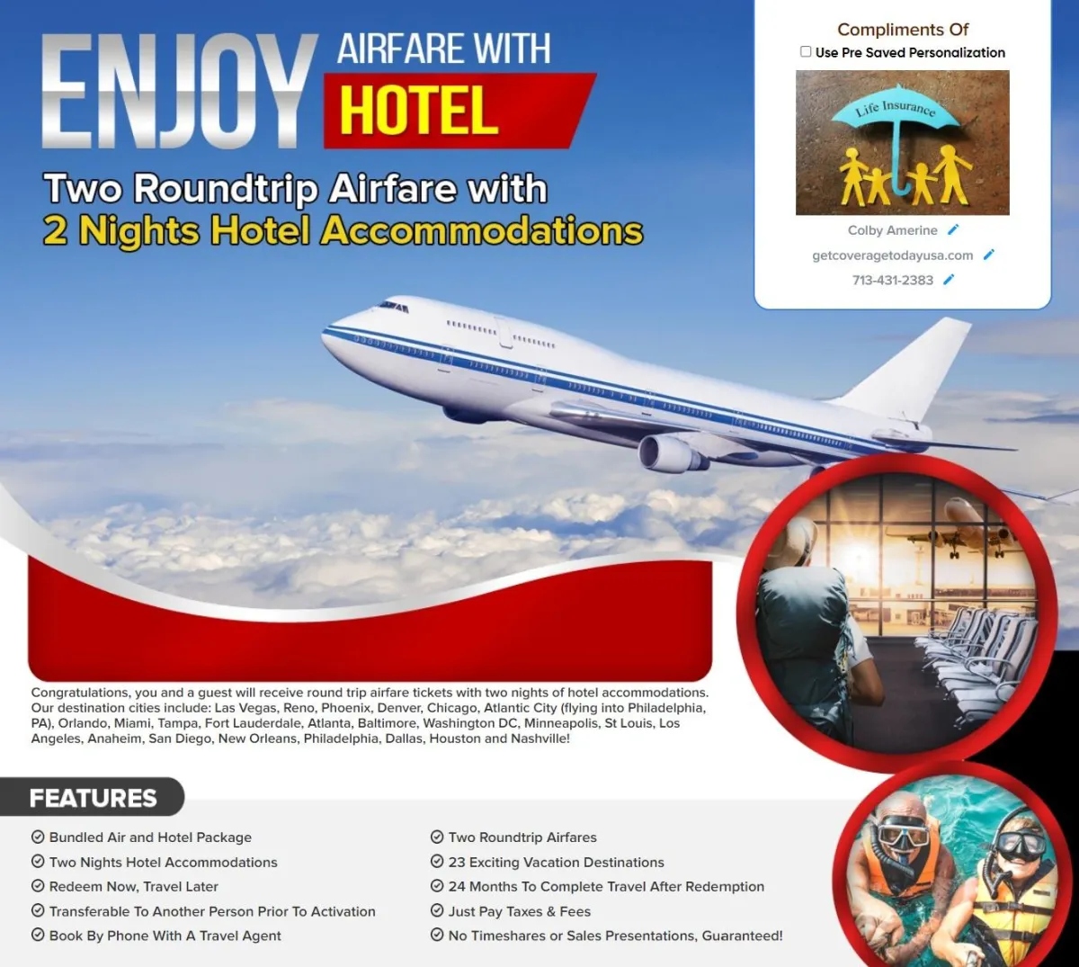 1. Two Roundtrip Airfare With 2 Nights Hotel Accommodations